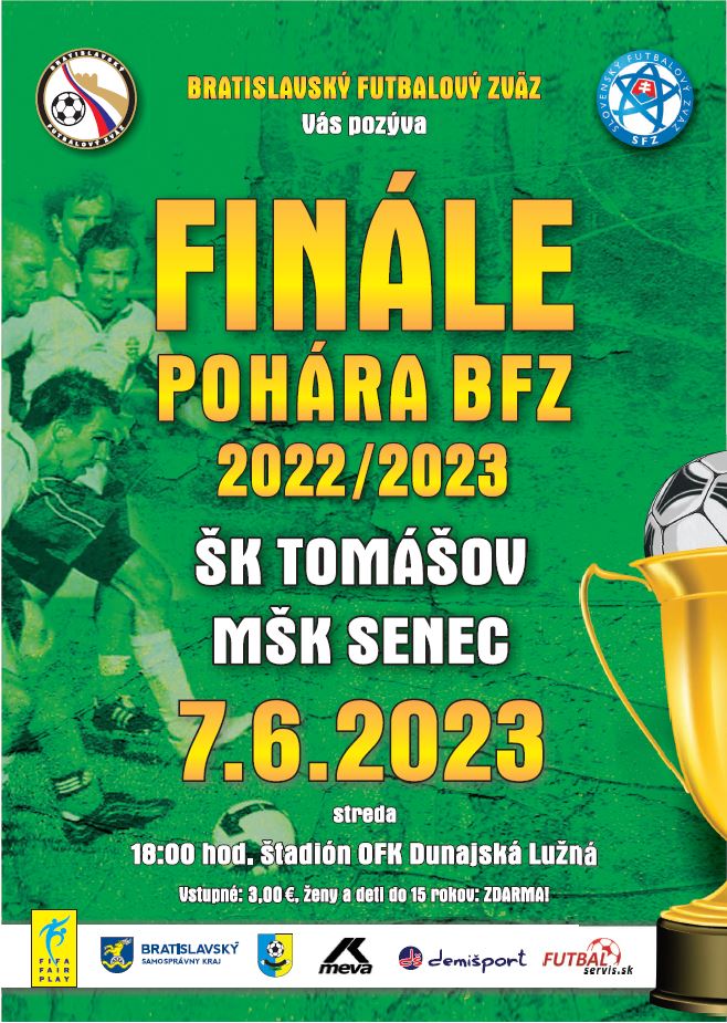 Opäť po roku Vás pozývame na finále pohára BFZ, ktoré sa uskutoční tentokrát na ihrisku v Dunajskej Lužnej dňa 07.06.2023 o 18:00h.