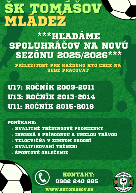 Prijímame nových spoluhráčov do kategórii mládeže !