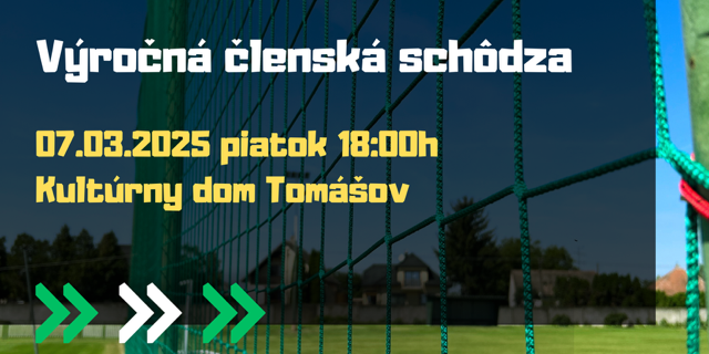 Pozývame členov na výročnú členskú schôdzu. Termín konania je 07.03.2025 piatok o 18:00h v kultúrnom dome v Tomášove.